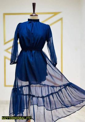 1 Pc Women's Stitched Chiffon Plain Frock